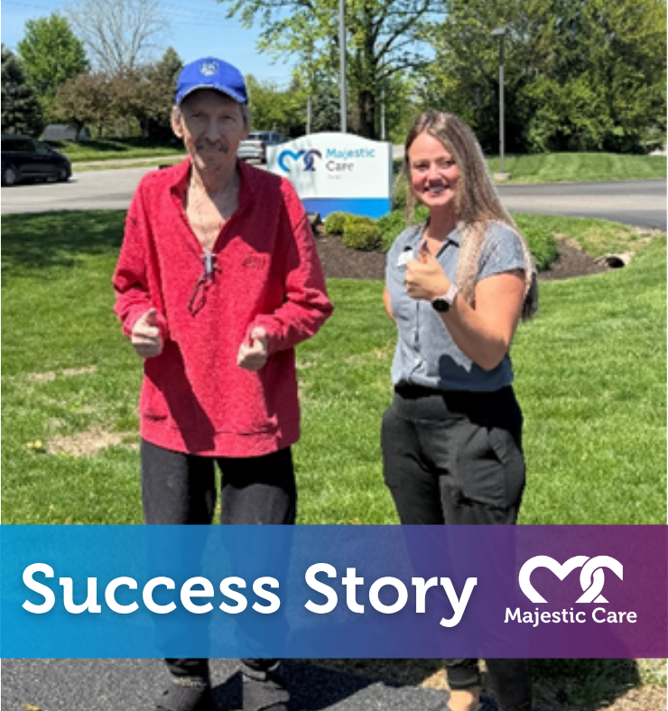 Jeffrey came to Majestic Care of Avon ready to begin his rehabilitation journey and work toward greater independence. When he first arrived, he needed additional encouragement and support to engage in daily activities and rebuild confidence in his mobility. With guidance from our therapy team and a personalized rehabilitation plan, Jeffrey began making steady progress.