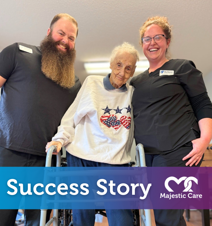 Mardenna came to Majestic Care of North Vernon experiencing general weakness and participated in our therapy program. Thanks to her hard work, determination, and the support of our dedicated care team, she has regained overall strength and is doing better with all of her daily activities! She would like to give a special shoutout to Jamie and Andrew for their consistent encouragement, guidance, and support throughout her recovery journey. Congratulations to Mardenna and her care team on this wonderful success!